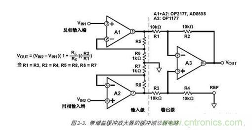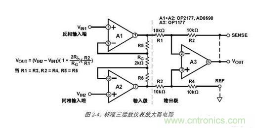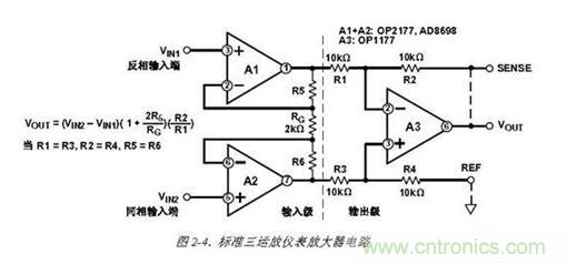 最后,由于結(jié)構(gòu)上的對稱性,輸入放大器的共模誤差,如果它們跟蹤,將被輸出級的減法器消除。這包括諸如共模抑制隨頻率變換的誤差。上述這些特性便是這種三運放結(jié)構(gòu)得到廣泛應(yīng)用的解釋。