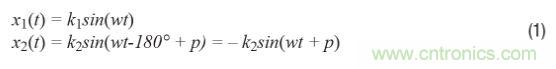 考慮ADC、放大器、巴倫等或任何將信號(hào)從單端轉(zhuǎn)換為差分(或反之)的器件的輸入x(t)。信號(hào)對(duì)x1(t)和x2(t)是正弦信號(hào),因此差分輸入信號(hào)具有如下形式: