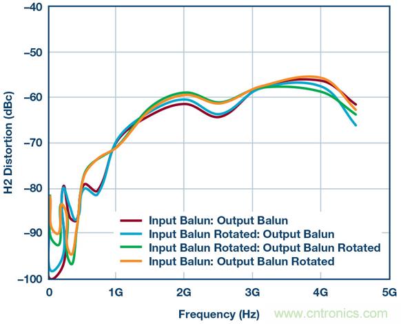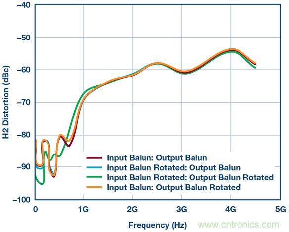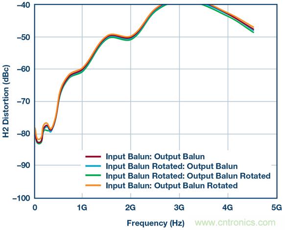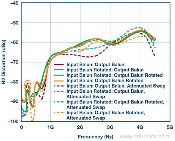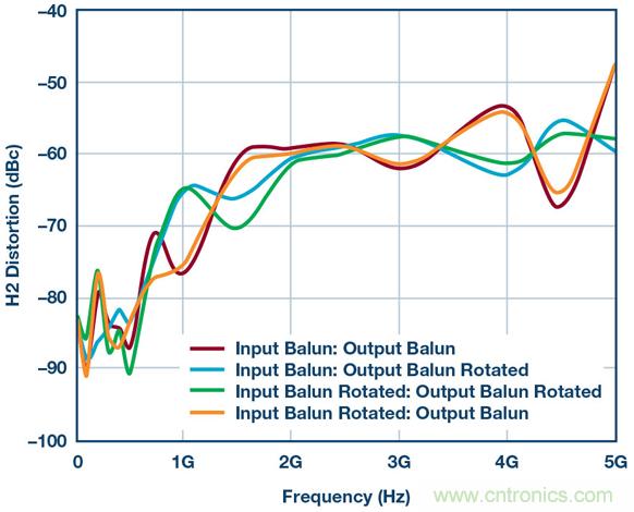 圖7.使用供應(yīng)商2B巴倫和不同巴倫方向重新測(cè)試HD2性能
