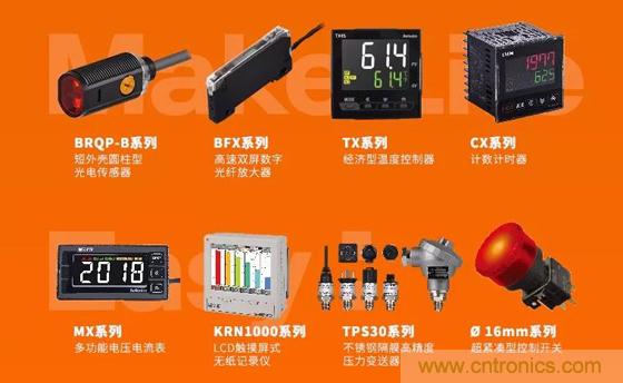 在此體系之下,企業(yè)近日再度推出了大量傳感器、控制器等新產品,其中包括短外殼圓柱型光電傳感器BRQP-B系列,高速雙屏數字光纖放大器BFX系列,溫度控制器TX系列,計數計時器CX系列,多功能電壓電流表MX系列,LCD觸摸屏式無紙記錄儀KRN1000系列,不銹鋼隔膜高精度壓力變送器TPS30系列,Ø 16mm控制開關,以及節(jié)省布線時間50%以上的傳感器連接器CNE系列......