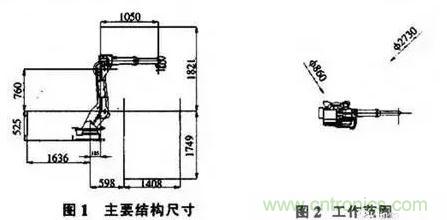 根據(jù)A II—V6L型工業(yè)機(jī)器人的主要參數(shù)進(jìn)行設(shè)計。主要結(jié)構(gòu)尺寸如圖I所示。機(jī)器人的工作范圍見圖2。
