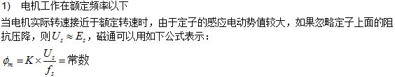 在交流電機(jī)的控制過(guò)程中,為了充分利用鐵芯,電機(jī)在額定運(yùn)行時(shí)設(shè)計(jì)磁通處于接近飽和的工作點(diǎn),所以必須控制電機(jī)的每極磁通在電機(jī)工作過(guò)程中保持基本不變。由上面兩式可知只要同時(shí)協(xié)調(diào)控制控制Es和Fs就可以達(dá)到上述控制要求。