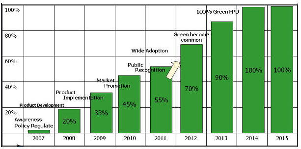 - 在2008年采用綠色環(huán)保技術(shù)或材料所生產(chǎn)的面板,預(yù)計(jì)在2012年將攀升至70%,并在2014年成為100%