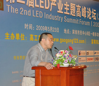 2009年5月23日,由高工在線和深圳市LED產(chǎn)業(yè)聯(lián)合會(huì)共同主辦的第二屆LED產(chǎn)業(yè)主題高峰論壇(2009夏季)在深圳市民中心B區(qū)一樓多功能廳隆重舉辦。來自香港應(yīng)用科技研究院的蔡振榮博士、清華大學(xué)深圳研究生院副研究員、半導(dǎo)體照明實(shí)驗(yàn)室副主任錢可元教授、康佳光電研究所副所長馬志凌博士、CREE 中國區(qū)總經(jīng)理唐國慶、世紀(jì)晶源研發(fā)中心主任鐘群博士、深圳雷曼光電科技限公司總經(jīng)理李漫鐵、德士達(dá)光電照明科技(深圳)有限公司的總經(jīng)理熊映翔、深圳市華測檢測技術(shù)股份有限公司(CTI華測檢測機(jī)構(gòu))副總裁/廣州市華德檢測技術(shù)開發(fā)有限公司(DEKRA-CTI華德)總經(jīng)理聶鵬翔、深圳茂碩電源科技股份有限公司的技術(shù)總監(jiān)蘇周等嘉賓就LED芯片、核心器件、顯示、道路照明、路燈標(biāo)準(zhǔn)與關(guān)鍵技術(shù)、LED驅(qū)動(dòng)電源、LED產(chǎn)品檢測、認(rèn)證和標(biāo)準(zhǔn)化等方面發(fā)表了主題演講。