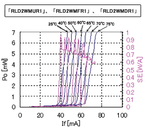 ROHM開(kāi)發(fā)了新型結(jié)構(gòu)(專(zhuān)利申請(qǐng)中)動(dòng)作溫度保持70ºC,工作電流為70mA的優(yōu)越的溫度特性和低電流工作實(shí)現(xiàn)了自動(dòng)脈沖式雙波長(zhǎng)激光二極管「RLD2WMUR1」,「RLD2WMFR1」,「RLD2WMDR1」。