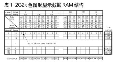 每個象素對應(yīng)18-bit的數(shù)據(jù),其中每個三色子象素為6-bit。GDDRAM對圖形顯示的象素數(shù)據(jù)具體對應(yīng)安排見表1。