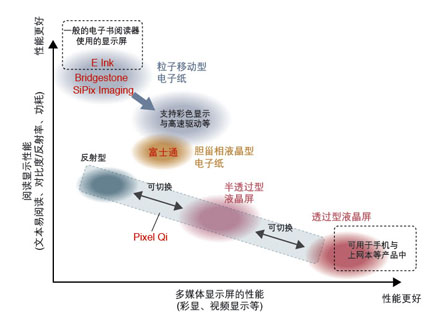 具體來說,日本Bridgestone公司與美國SiPix Imaging公司等多家廠商已經(jīng)開始為電子書閱讀器提供電子紙。美國初創(chuàng)企業(yè)Pixel Qi公司也開始提供具有專門設(shè)計的電子紙顯示模式的液晶顯示屏。