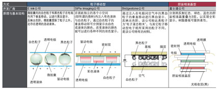 表1 已進入實用化階段的主要電子紙技術(shù)的比較