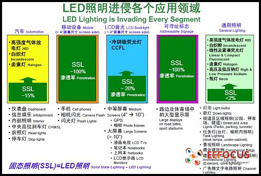 “最后,LED和OLED的目標(biāo)應(yīng)用領(lǐng)域也不同,后者由于尺寸的受限,主要應(yīng)用在便攜式電子設(shè)備上。LED則在照明以及可尋址標(biāo)志等領(lǐng)域大有可為。目前,美國的嵌入式街燈絕大多數(shù)已經(jīng)采用了LED照明技術(shù)。”