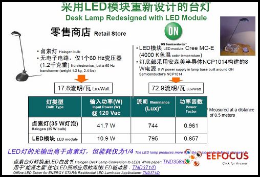 采用LED模塊重新設(shè)計的臺燈參數(shù)對比