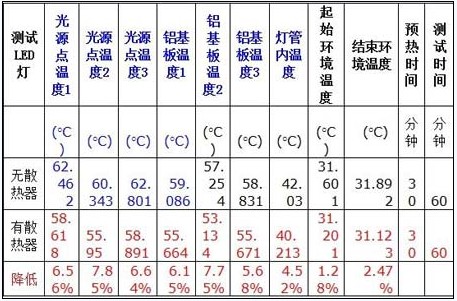 熱傳導(dǎo)的途徑有三種,對(duì)流、傳導(dǎo)及輻射。在封閉的環(huán)境中,對(duì)流及傳導(dǎo)實(shí)現(xiàn)的可能較小,而通過輻射將熱散發(fā)出來,是日光燈管考慮的重點(diǎn)。以下是我們做的LED日光燈管的測(cè)試數(shù)據(jù),在LED銀腳焊點(diǎn)外測(cè)出的溫度才58度。