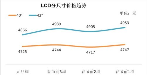 元旦到春節(jié)前的旺季內(nèi)不僅城市市場(chǎng)有很強(qiáng)的爆發(fā)力,而且村鎮(zhèn)市場(chǎng)的需求量將會(huì)得到極大的釋放。所以,從元旦到春節(jié)前連續(xù)6周的市場(chǎng)旺季整體市場(chǎng)的均價(jià)將會(huì)有一定的波動(dòng)。以40英寸和42英寸液晶電視為例來(lái)看,價(jià)格將呈現(xiàn)小幅周度波動(dòng)的變化。(詳見下圖)