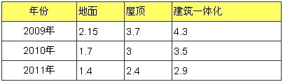 與此同時的各地政府也紛紛出臺政策刺激光伏電站的發(fā)展,杭州市提出“陽光屋頂”計劃,廣州,南昌,無錫,保定,上海紛紛提出了本地的光伏電站發(fā)展規(guī)劃,中國光伏最發(fā)達的江蘇省率先出臺了《太陽能光電建筑應(yīng)用財政補助資金管理暫行辦法》,其中規(guī)定,通過3年努力,力爭在全省建成光伏并網(wǎng)發(fā)電裝機容量400兆瓦,2009-2011年分年度目標電價為: