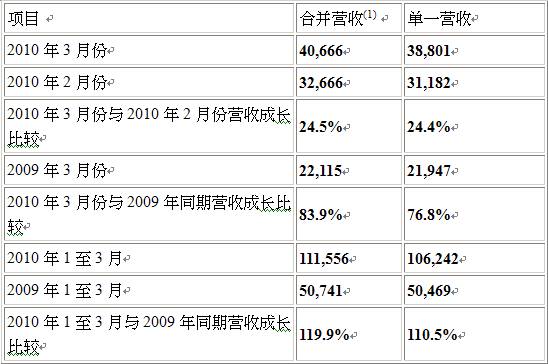 - 友達光電2010年3月份合并營業(yè)額達新臺幣406.66億