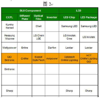 2. 目前正處于CCFL與LED背光產(chǎn)品世代交替之時, 整機(jī)廠商應(yīng)積極主動掌握LED背光資源,逐步取代CCFL,均衡健康的完成內(nèi)部供應(yīng)鏈結(jié)構(gòu)以及生產(chǎn)制造工序的調(diào)整。