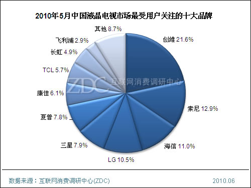 (圖)2010年5月中國液晶電視市場最受用戶關注的十大品牌