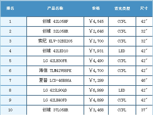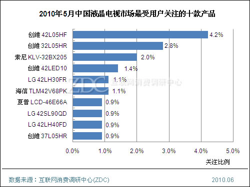 (圖)2010年5月中國液晶電視市場最受用戶關注的十款產(chǎn)品