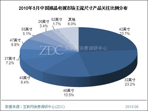 (圖)2010年5月中國液晶電視市場主流尺寸產(chǎn)品關注比例分布