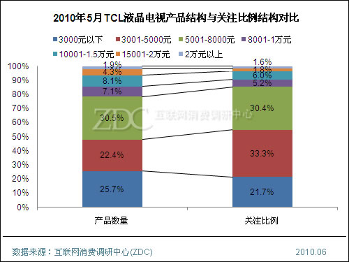 (圖)2010年5月TCl液晶電視產(chǎn)品結(jié)構(gòu)與關注比例結(jié)構(gòu)對比