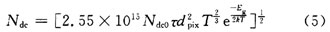 對于CCD圖像傳感器而言,導致暗白點、白色損傷或顆粒的原因是由于光電二極管的暗電流,這也是決定畫質(zhì)最重要的因素。固定圖像噪聲的起因是各像素中暗電流不均勻,即使沒有入射光一樣會發(fā)生,它與噪聲信號電壓的儲存時間成正比,并具有與溫度密切相關(guān)的性質(zhì),如式(5)所示: