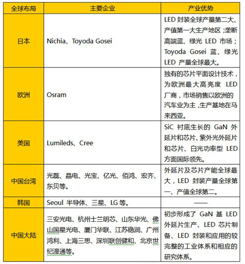 中國大陸和臺灣地區(qū)進(jìn)入led產(chǎn)業(yè)較晚,led企業(yè)的資金實力、技術(shù)水平與歐、美、日企業(yè)有一定差距,因而多專注于產(chǎn)業(yè)鏈的某個環(huán)節(jié)、走專業(yè)化道路。隨著,中國大陸和臺灣地區(qū)企業(yè)在資金實力和技術(shù)水平的提升,目前在封裝領(lǐng)域,發(fā)光效率、顯色指數(shù)等主要指標(biāo)方面國內(nèi)外已不存在明顯差距。