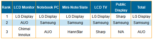 資料來源: DisplaySearch Quarterly Large-Area TFT LCD Shipment Report