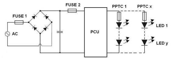 好利來(lái)(中國(guó))電子科技股份有限公司針對(duì)LED照明電路提供的保護(hù)元器件和方案,使LED照明燈具具有更高的可靠性和更長(zhǎng)的壽命。如圖: