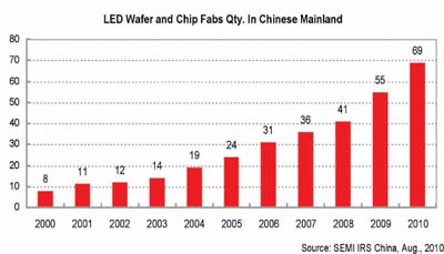 在中國LED產(chǎn)業(yè)結(jié)構(gòu)不斷調(diào)整和優(yōu)化的過程中,未來幾年,中國外延、芯片企業(yè)規(guī)模也將進(jìn)一步擴(kuò)大。到2010年8月,中國已有LED外延和芯片企業(yè)69家(包括20余家在建或計(jì)劃中)。在已經(jīng)生產(chǎn)或在建的企業(yè)中,有48家涉及LED核心環(huán)節(jié)外延及芯片制造,有10余家專注于LED芯片制造。