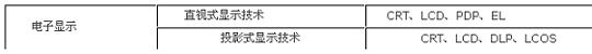 電子顯示又有很多類別,我們可以簡(jiǎn)單地將其分為直視式和投影式兩種。每種方式又包含多種顯示技術(shù),如下表所示: