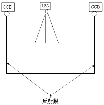 CCD光掃描原理是:在顯示區(qū)域的一邊設(shè)置兩個固定距離的CCD線陣探測器和紅外發(fā)射器,對準(zhǔn)顯示區(qū)域。在顯示區(qū)域的另外三邊設(shè)置可以反射光線的反射膜,在沒有物體阻擋時,線陣CCD檢測到的是一條完整的光帶。當(dāng)有物體在顯示區(qū)域中擋住光線傳播路徑時,在線陣CCD檢測到的光帶中會出現(xiàn)無反光區(qū)域,分布在兩個角的CCD分別檢測到的遮擋區(qū)域反應(yīng)在線陣CCD的對應(yīng)區(qū)域,根據(jù)對應(yīng)的區(qū)域計算出物體在顯示區(qū)域的位置,是一種交叉點測試定位方式。