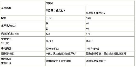 (A)某品牌散射幕和光學幕的主要參數(shù)對比