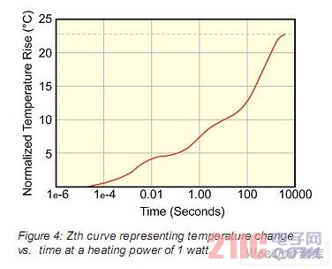 在電子行業(yè),術(shù)語(yǔ)“Z”代表阻抗,在我們的例子中代表熱阻抗。在熱阻抗的曲線中,其表示溫差除以熱功耗的值。因此,圖4中的Z曲線表述了對(duì)于1W熱功耗的溫度改變。