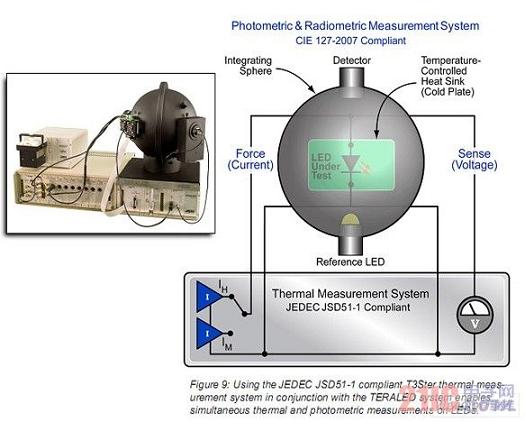 當(dāng)TERALED以單機(jī)模式使用時(shí),它可以完成光度測(cè)量。當(dāng)結(jié)合T3Ster系統(tǒng)時(shí)可以進(jìn)行熱和光度測(cè)量。圖9是TERALED和T3Ster系統(tǒng)一起使用的簡(jiǎn)圖。