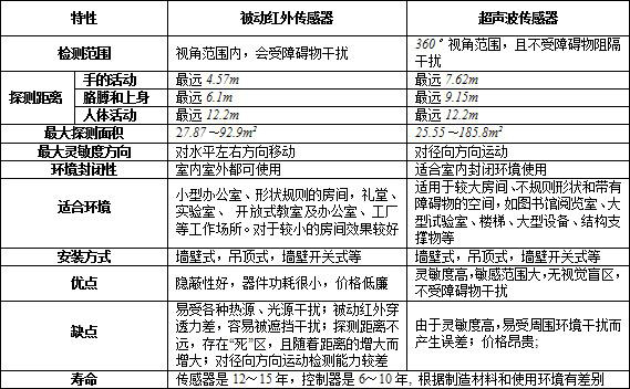 表1:被動(dòng)紅外傳感器和超聲波傳感器性能比較
