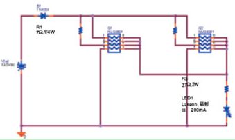 圖 8:用NUD4001 器件驅(qū)動(dòng)一個(gè)200mA 的LED 的車廂頂燈電路