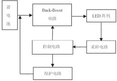 圖2 可知,Buck-Boost 電路將蓄電池電能變換后對LED 陣列供電,采樣電路對流過LED 的電流采樣,將信號傳到控制電路??刂齐娐贩治霾蓸有畔ⅲ{(diào)節(jié)Buck-Boost 電路中開關(guān)管的占空比,保證通過LED 電流恒定;當電路出現(xiàn)異常時,通過控制保護電路切斷電源,保證LED 不受損害。一般情況下,LED 驅(qū)動電路必須滿足下列要求: