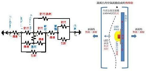 基于上述理論,將LED元件熱阻擴(kuò)大運用至背光散熱模組中,因大面積面板薄型化的需求,在極小空間中使用高熱源密度元件,所以除了自然對流外,還需輔以風(fēng)扇方式進(jìn)行強(qiáng)制對流增加散熱。