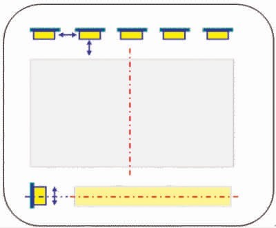 對背光的合理設計可以提高LED的利用效率。影響LED利用效率的結(jié)構(gòu)參數(shù)主要有3個:LED之間的距離;LED發(fā)光面到LGP入光面之間的距離;LED發(fā)光面和LGP入光面兩者的垂直距離。如圖3所示。只有將三者綜合考慮才能最大化LED的利用效率,從而降低功耗。