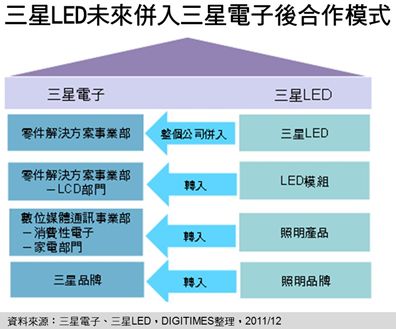林芬卉說明,為提升三星LED事業(yè)競(jìng)爭(zhēng)力,在三星電子(Samsung Electronics)組織改造之際,未來三星LED將納入三星電子的「零件解決方案事業(yè)部」,且LED上、中、下游產(chǎn)業(yè)鏈與三星電子各事業(yè)部皆有合作關(guān)系,藉由共享資源方式以發(fā)揮綜效。