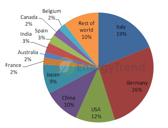 根據(jù)EnergyTrend的預(yù)估,2011年全球太陽能市場安裝量將來到19GW,但產(chǎn)業(yè)整體的庫存量(包括成品與半成品)將高達(dá)10GW左右,因此就產(chǎn)業(yè)鏈的供需狀況來看仍是處于嚴(yán)重供過于求。展望2012年,EnergyTrend預(yù)估全球市場需求量約維持在19GW左右,需求無法成長的主因在于歐洲市場的需求受到政策調(diào)整的影響,意大利、德國、英國等國的需求呈現(xiàn)下滑的態(tài)勢;另一方面,亞洲市場的需求受到政策的鼓勵而出現(xiàn)成長的狀況,但像中國、日本、馬來西亞、與泰國等,2012年的需求仍處于小幅成長的狀況,EnergyTrend預(yù)估至2013年市場才會出現(xiàn)強(qiáng)勁的成長。除此之外,北美與印度市場雖然受到矚目,但這二大市場仍有問題需求解決。在北美市場來看,美國市場受到Cash Grant法案將于2011年底到期的影響,2012年將以Tax Credit法案接手,然EnergyTrend認(rèn)為Tax Credit對于推升市場發(fā)展的力道有限,使得2012年美國市場處于混沌不明的狀況。而在印度市場方面,雖然National Solar Mission的推行讓印度市場具有龐大的潛在需求,但中央與地方政府的執(zhí)行效率與財(cái)務(wù)狀況,再加上在地自制率(Local Content Requirement)的推行,將是影響印度市場未來發(fā)展的不確定因素。