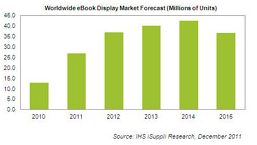 電子書閱讀器顯示器市場將面臨成長瓶頸。即使2011年整體出貨量成長逾倍,但市場研究機構(gòu)IHS iSuppli預(yù)估,未來3年,電子書閱讀器顯示器的成長將逐漸放緩,甚至于2015年首度出現(xiàn)負(fù)成長。
