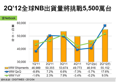 - 2012年第1季全球NB出貨淡季不淡