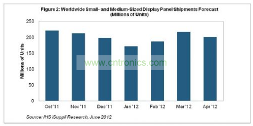 但是,新款智能手機(jī)與平板電腦的推出,將刺激OEM廠商對于SMD面板的需求,因此SMD出貨量預(yù)計在第三季度上升。據(jù)信蘋果將在第三季度推出一款新型智能手機(jī),屬于新一代iPhone。IHS iSuppli公司認(rèn)為,預(yù)計手機(jī)OEM和中國白牌廠商7月和8月對于面板的需求也會上升,推動SMD面板出貨量環(huán)比增長5%左右。