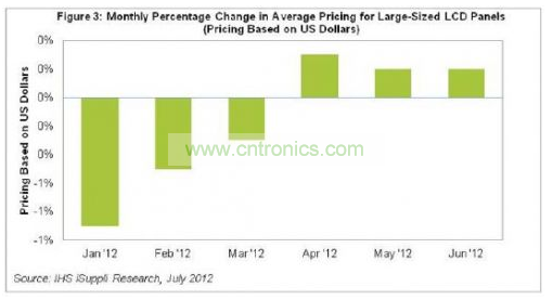 幫助推動6月價格上漲的突出因素包括廠商通過壓低產(chǎn)能利用率來嚴(yán)格控制產(chǎn)量,以及生產(chǎn)結(jié)構(gòu)發(fā)生變化,導(dǎo)致部分面板型號出現(xiàn)供應(yīng)緊張。雖然終端需求仍因美國經(jīng)濟黯淡、歐元區(qū)債務(wù)危機和新興市場增長放緩的影響而保持疲軟,但隨著新的超級本的推出以及消費者為收看倫敦奧運會而購買新電視,預(yù)計今年下半年需求將改善。