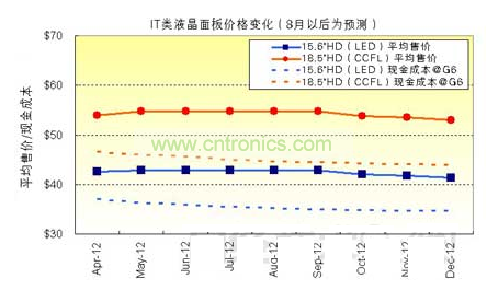 圖1:IT類(lèi)液晶面板價(jià)格變化(8月以后為預(yù)測(cè))