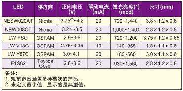 LED技術(shù)持續(xù)快速改進,制造商在使用新的材料、制造技術(shù)和LED設(shè)計來為同等大小的電流釋出更大的光輸出,這樣一來,幾年前需要4個LED進行背光的顯示屏如今可能采用2個LED就能實現(xiàn)同樣的背光亮度。不僅如此,過去通常使用冷陰極熒光燈(CCFL)進行背光的4到7英寸較大顯示屏,如今正在轉(zhuǎn)向使用LED進行背光。此外,LED的正向電壓正趨向更低。因此,不僅需要考慮驅(qū)動器制造商的數(shù)據(jù)表曲線上的驅(qū)動器效率,還需要基于采用所選LED對驅(qū)動器進行的評估來予以考慮。表1列舉了幾款LED的一些重要規(guī)范,顯示了這些LED在正向電壓和發(fā)光亮度等方面的差別。需要說明的是,正向電壓范圍的變化較大,這意味著驅(qū)動器的效率應該采用LED規(guī)范的極限值來進行評估。