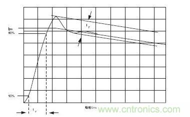最大允許振鈴波峰對(duì)峰值Ir必須小于Ipr的15%,脈沖起始后要求100ns內(nèi)沒有明顯振鈴波;