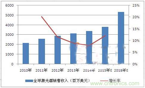 2012年,激光器從科學創(chuàng)新到工業(yè)"工具"取得進展,并認為現(xiàn)在是時候考慮開拓一些新型應用領域了,這些新興領域可能改善激光器市場長久以來"緩慢而穩(wěn)定"的5%--6%年復合平均增長率(CAGR),使其以兩位數(shù)速度增長。