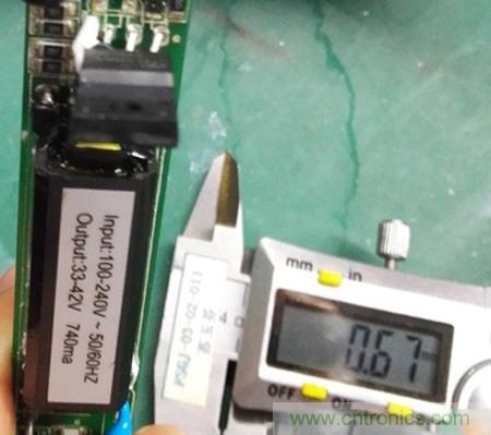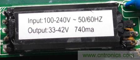 15、產(chǎn)品輸出為DC42V/740mA,變壓器次級繞組銅線用0.3mm,線徑偏小造成變壓器溫度高驅(qū)動轉(zhuǎn)換效率低,建議改為0.25mm雙線并繞。