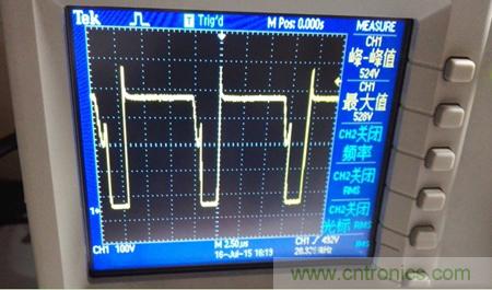 6、功率開關(guān)管采用TO-220塑封12N65的場效應(yīng)管ID太大12A。一方面提高了成本,造成浪費(fèi);另外一方面因為開關(guān)管的結(jié)電容太大Ciss為2290PF,會造成驅(qū)動不足的現(xiàn)象反而會影響驅(qū)動轉(zhuǎn)換效率,實際測量開關(guān)管最高峰值電壓才524V。因此建議設(shè)計開關(guān)管用5N60或者7N60的MOS管。